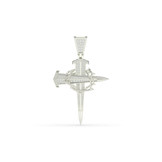 Gold Nail Cross Pendant with Crown of Thorns