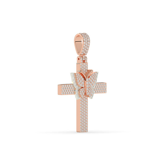 Butterfly Accent Diamond Cross Pendant