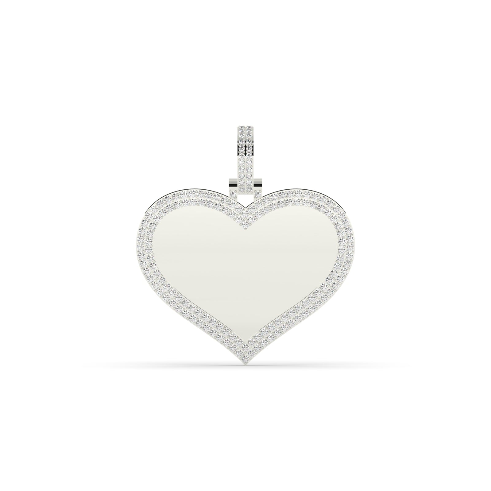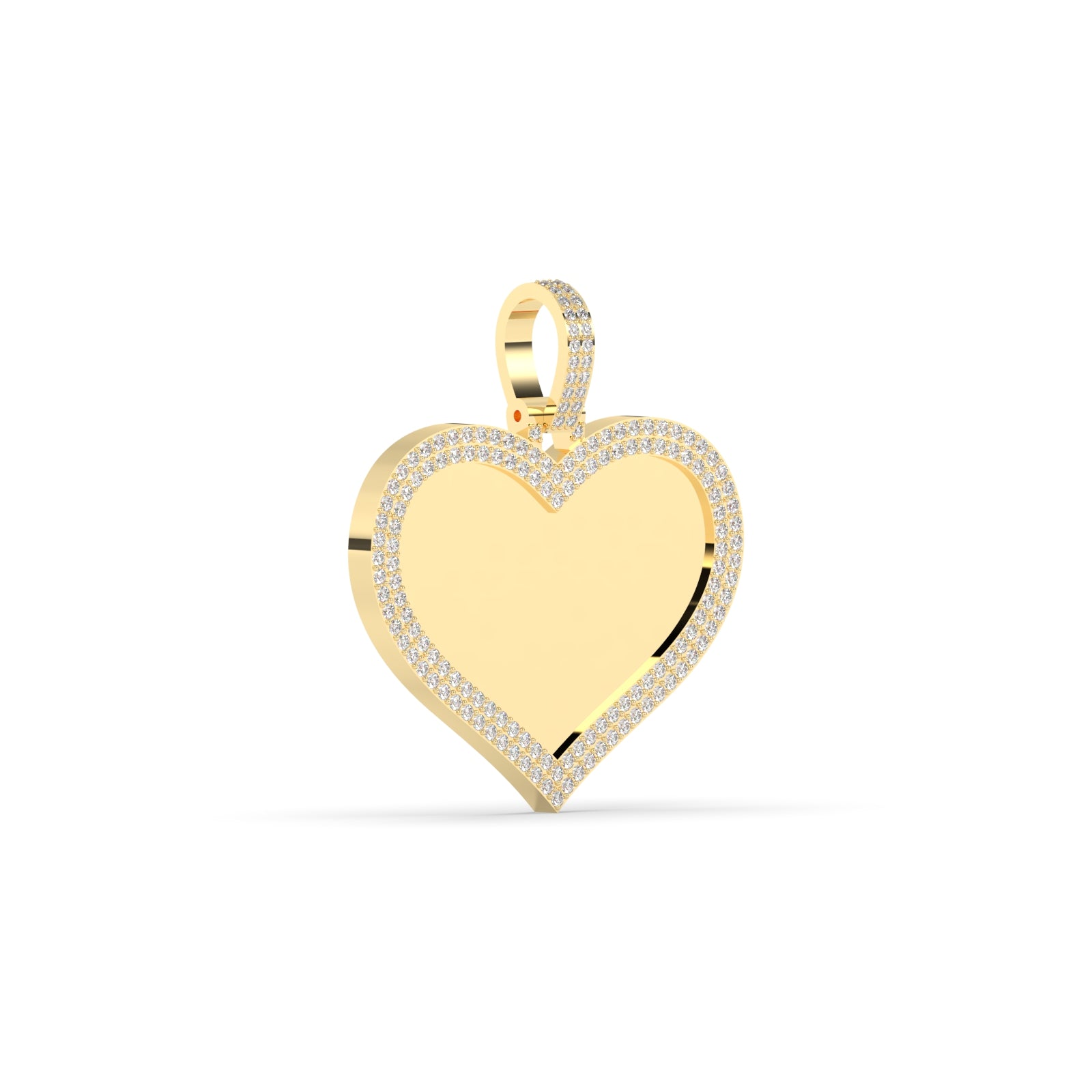 This elegant Gold Heart Pendant features 1.848 carats of diamonds, with 162 diamond pieces, set within a stunning Diamond Border. The pendant has a net weight of 13 grams and a gross weight of 13.369 grams. It measures 33mm in height and 41mm in width for a truly eye-catching piece.