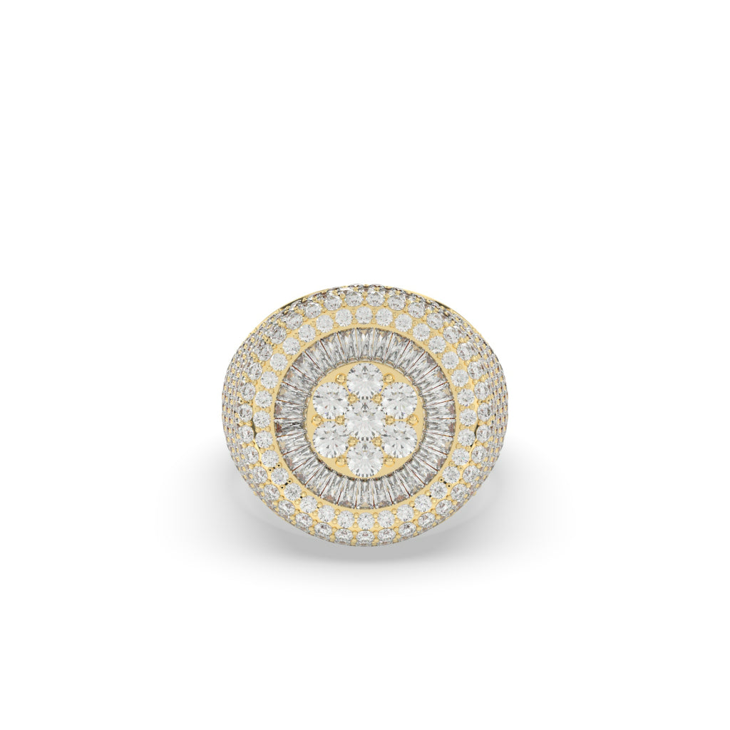 Experience the luxurious elegance of our Golden Crown Diamond Cluster Ring. With a gross weight of 14.33 grams and a net weight of 13 grams, this ring features 6.65 carats of dazzling diamonds in a cluster of 368 pieces. Its height of 21.00 MM and width of 5.50 MM add a touch of sophistication to any outfit.