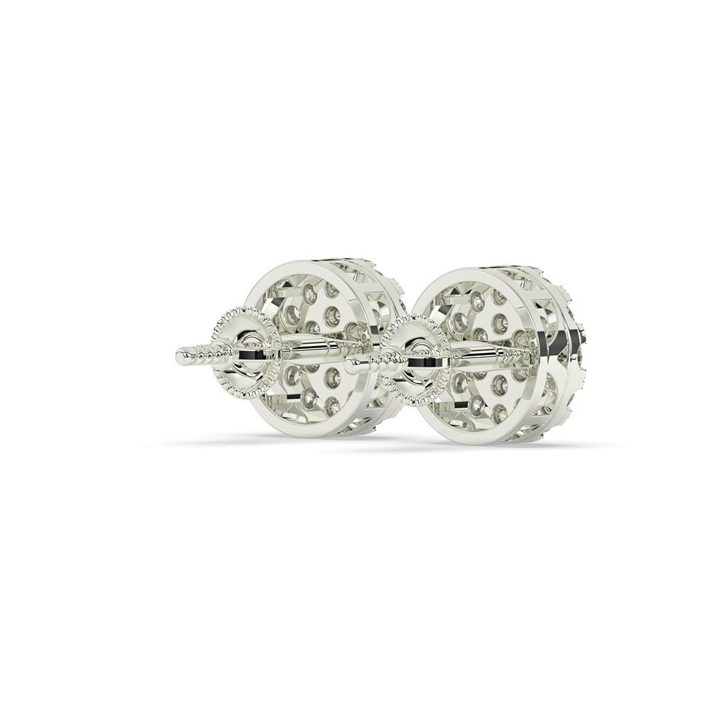 Expertly crafted with 38 pieces of sparkling diamonds with a total weight of 1.06 carats, these classic diamond stud earrings are the epitome of elegance. With a gross weight of 4.212, these earrings are designed to be lightweight and comfortable for all-day wear. Measuring 9.90 MM in both height and width, they are the perfect size for adding a touch of luxury to any outfit.