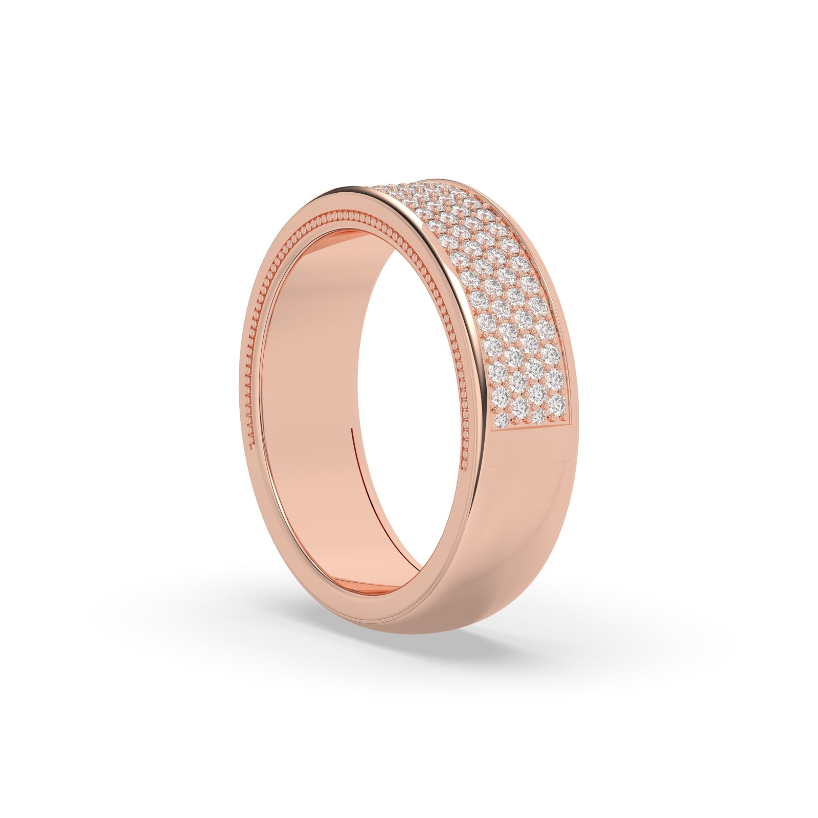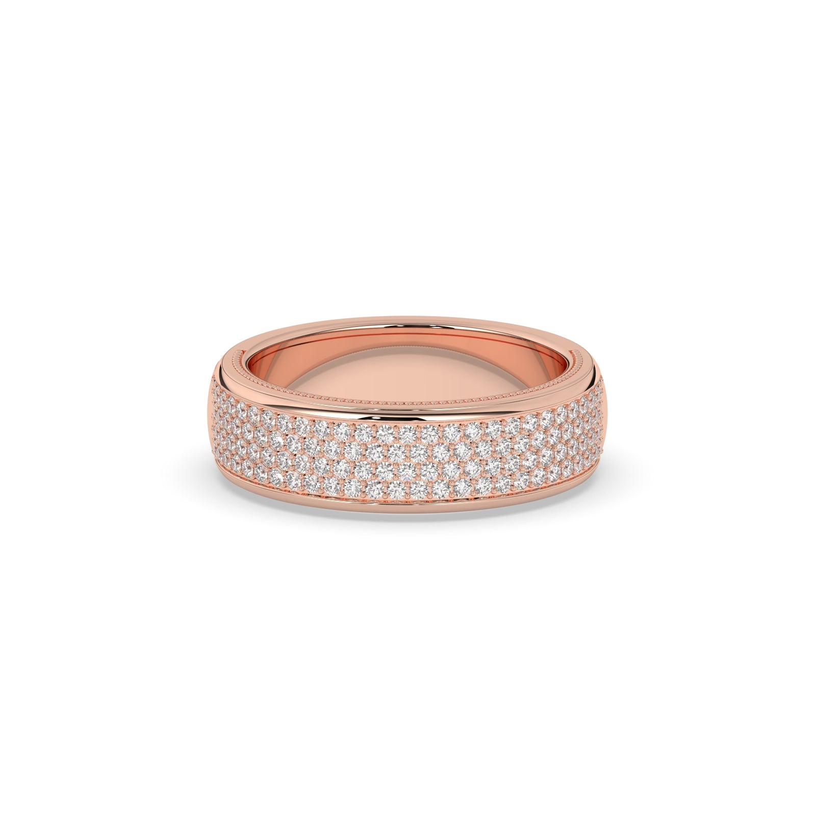 Crafted with 14K gold, this Classic Pavé Wedding Band features 1.06 carats of brilliant diamonds in a pavé setting, adding a touch of elegance and sparkle to any wedding ensemble. With a height and width of 7.50 MM, it is the perfect size to make a statement without being too bulky.