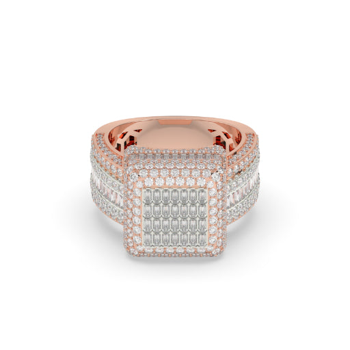 Expertly crafted with 394 sparkling diamonds, this Baguette Cluster Square Gold Ring boasts a 5.26 carat weight, adding a touch of luxurious elegance to any outfit. The 13.052 gram gross weight and 12 gram net weight make it lightweight to wear. Its 15.70 MM height and 5.00 MM width make it a statement piece for any occasion.