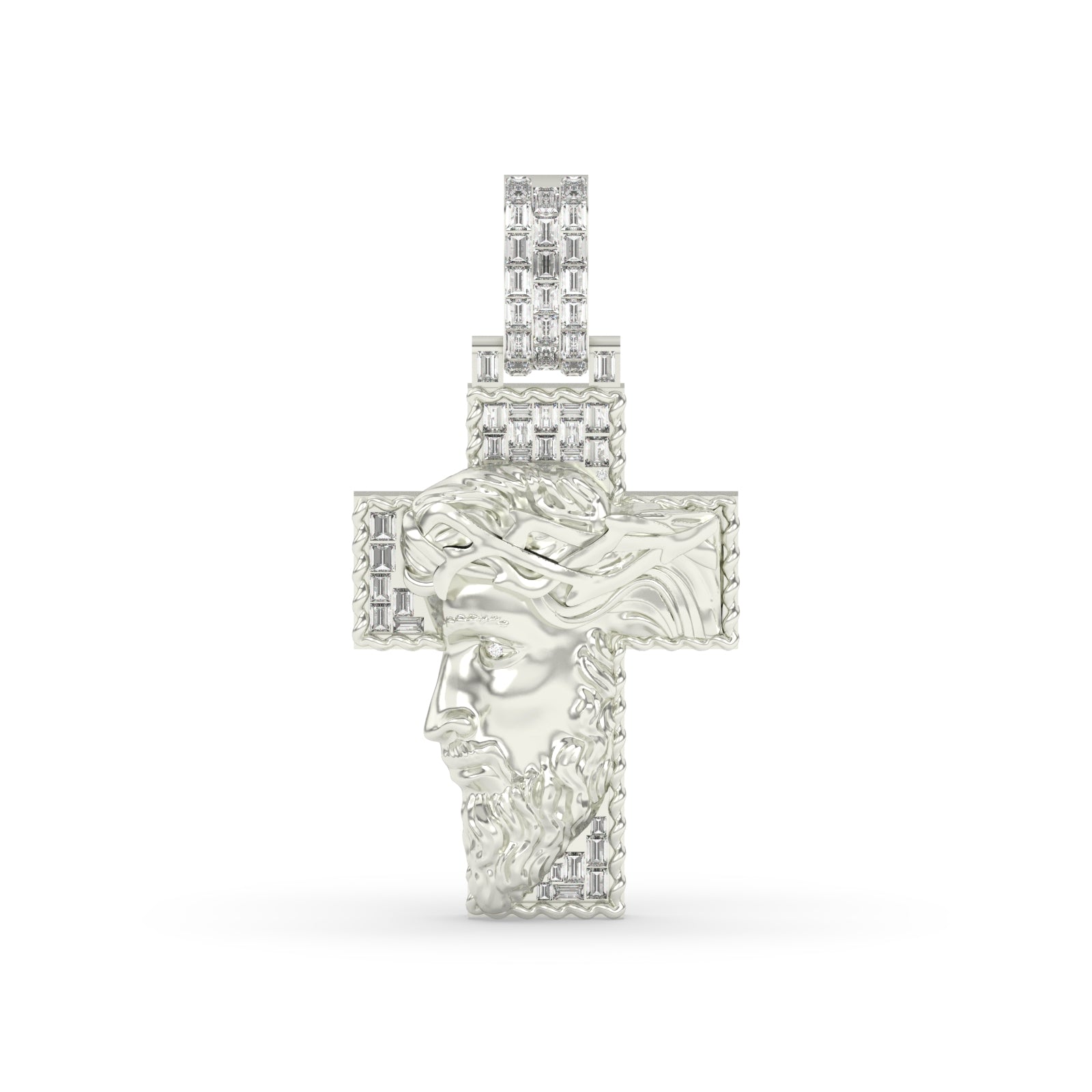 This Baguette Diamond Jesus Head Cross Charm is expertly crafted with a gross weight of 65.788 grams and a precise net weight of 65 grams. Adorned with 3.94 carats of brilliant diamonds in 232 pieces, it stands 63.5mm tall and 45.72mm wide, making it a stunning and meaningful addition to any jewelry collection.