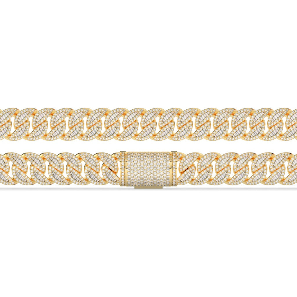 Add a touch of elegance to your look with our Baguette Iced Cuban Link Bracelet. Boasting a gross weight of 102.782 grams and a net weight of 100 grams, this exquisite bracelet features 1052 diamonds with a weight of 13.911 carats. Its height of 203.00 MM (8.00 INCH) and width of 13.00 MM (0.51 INCH) make it the perfect accessory for any occasion.