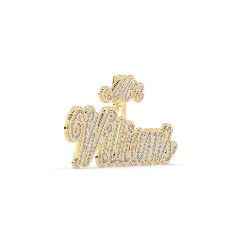 The Bold Baguette Custom Name Charm boasts a gross weight of 93.691 with a net weight of 90. Featuring 18.4 carats of diamonds, totaling 2421 pieces, this charm is a stunning addition to any jewelry collection. Its impressive height of 44.50 MM and width of 104.00 MM make it a bold and eye-catching piece.