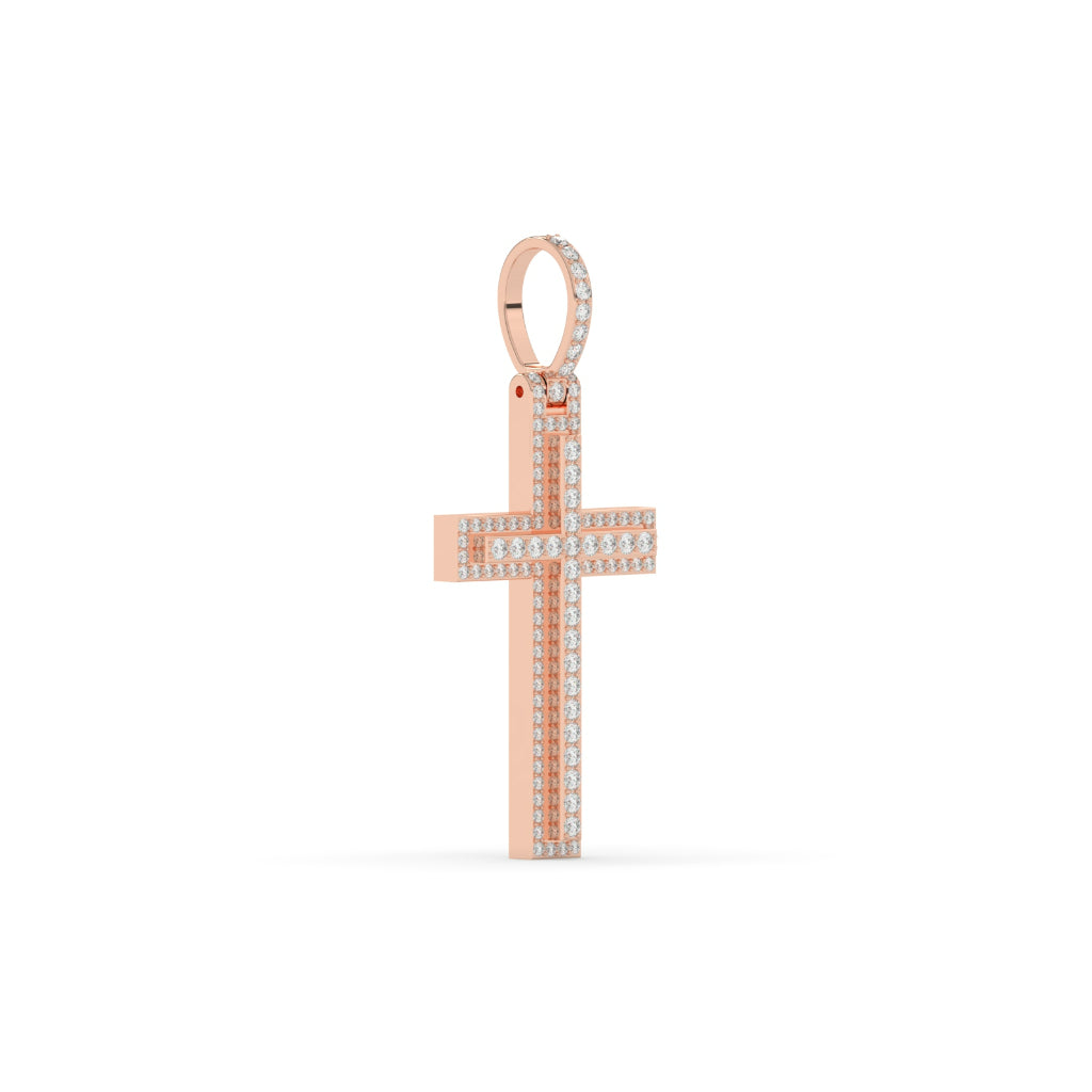 This Classic Iced Out Cross Pendant features 106 1.27 carat diamonds, with a gross weight of 7.554 grams and a net weight of 7.3 grams. Measuring 33.20 MM in height and 20.20 MM in width, it is the perfect statement piece for any occasion. Elevate your style with this dazzling pendant.