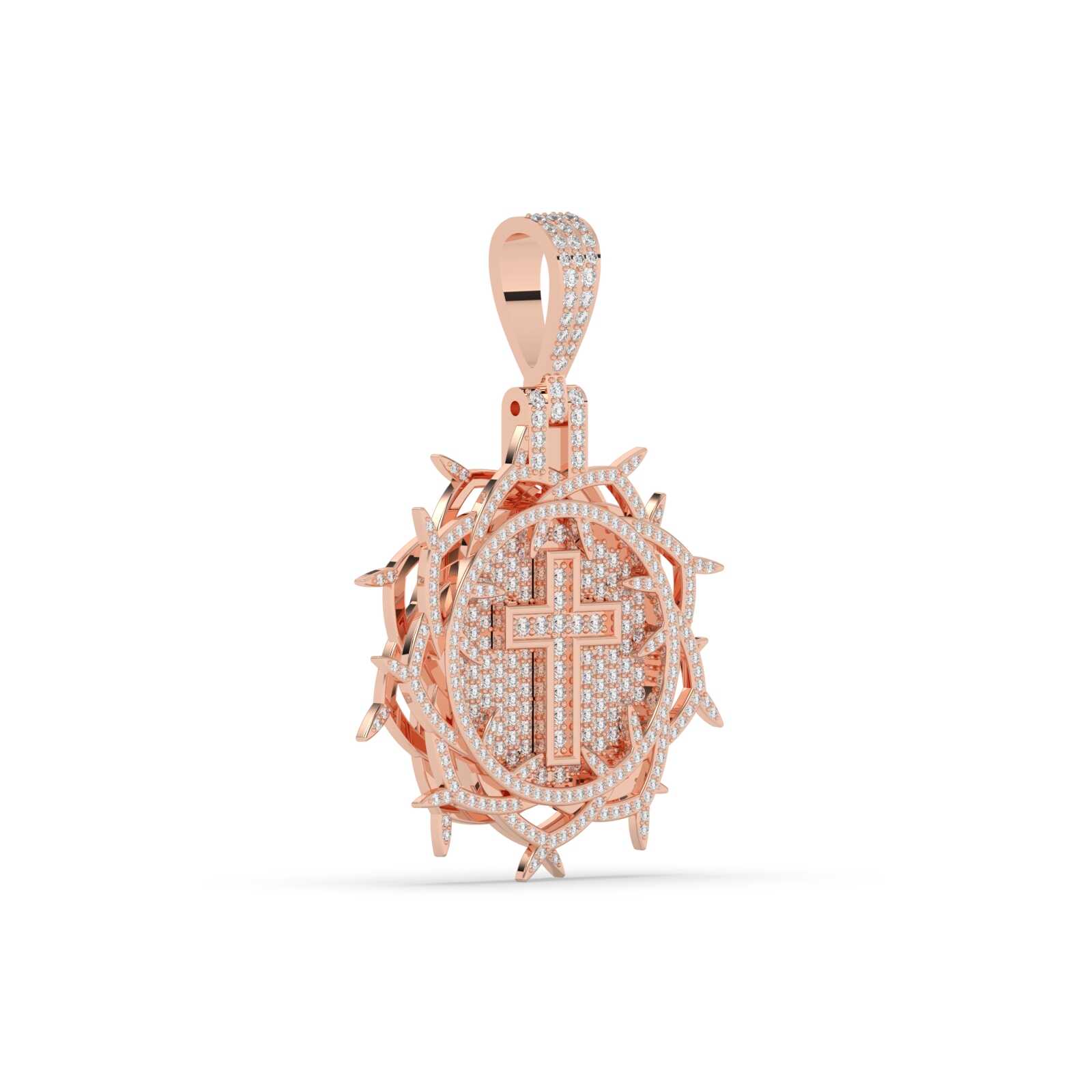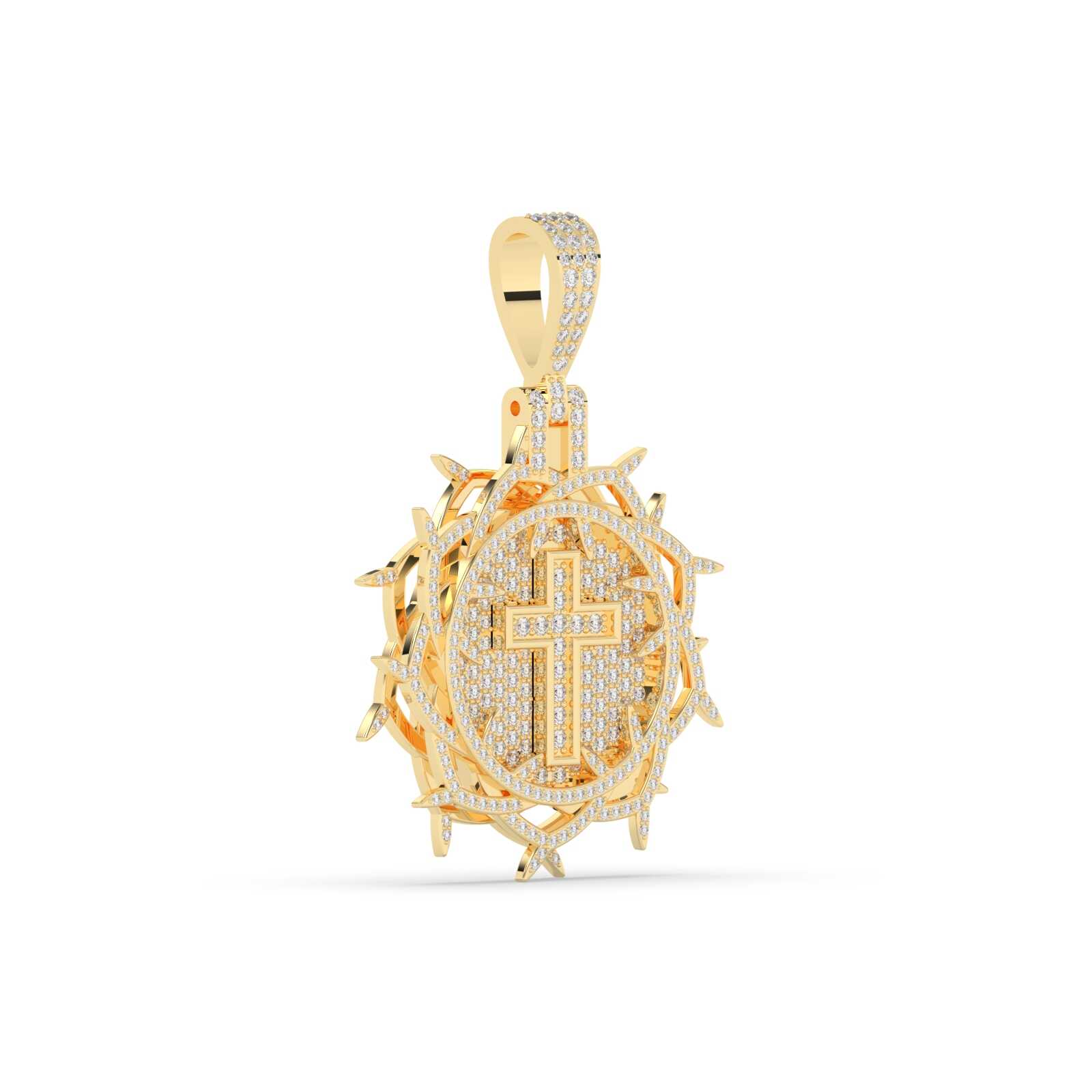 Expertly crafted and stunning, the Crown of Thorns Cross Pendant features a gross weight of 13.862 with a net weight of 13.5. Adorned with 1.81 carats of diamonds, totaling 379 pieces, this pendant stands at 31.00mm in height and width. Perfect for any occasion, its intricate design is sure to make a statement.