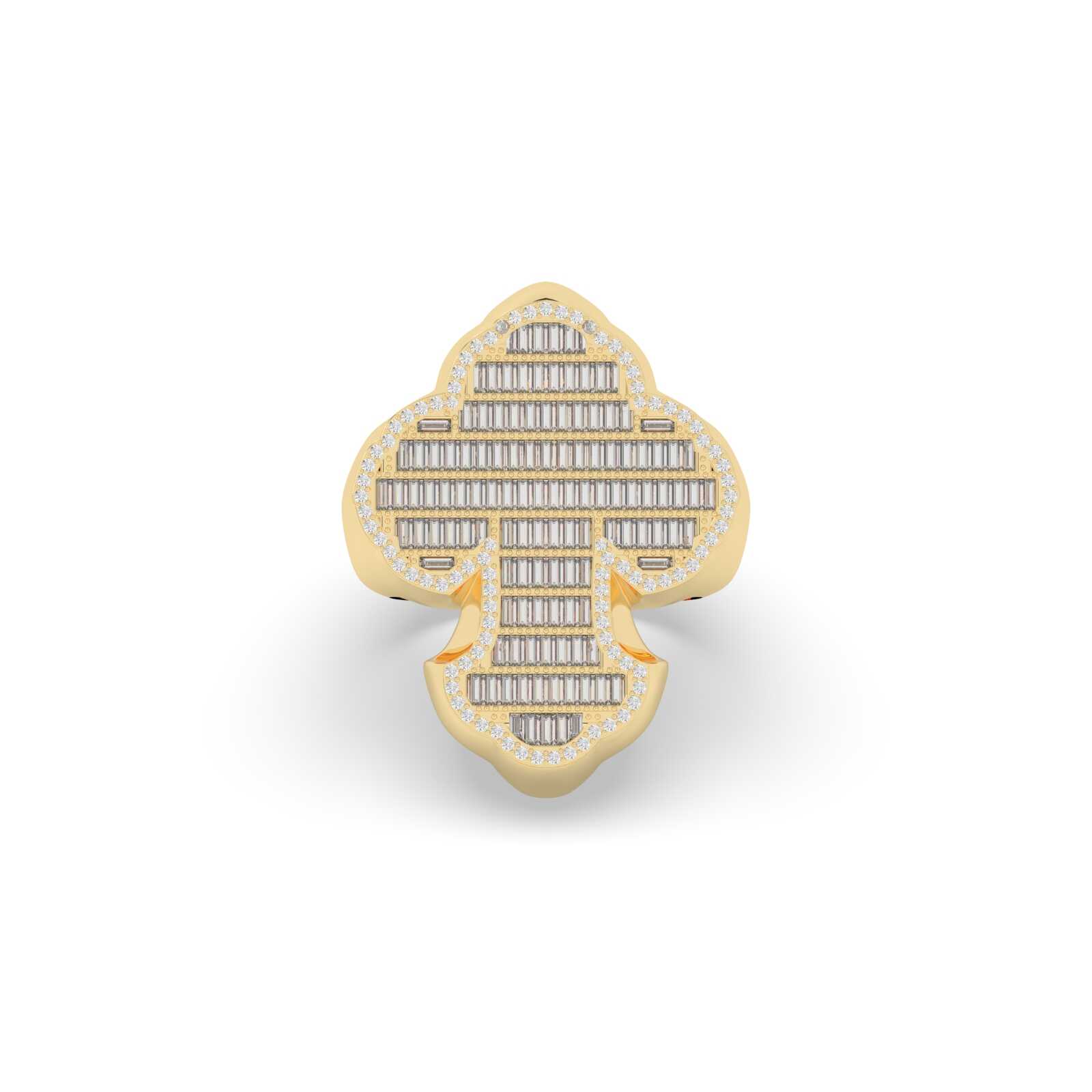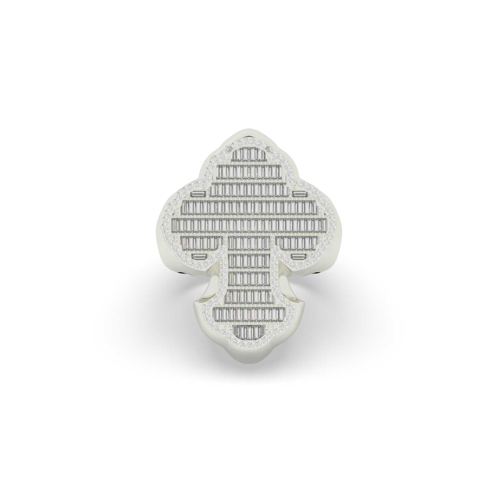 Add a touch of elegance to your look with our Crowned Elegance Diamond Cross Ring. Crafted with a gross weight of 21.555 grams and a net weight of 21 grams, this ring features 2.774 carats of sparkling diamonds, with a total of 217 diamond pieces. The 30.00 mm height and 10.00 mm width make for a stunning and eye-catching design. Elevate any outfit with this exquisite and sophisticated piece.