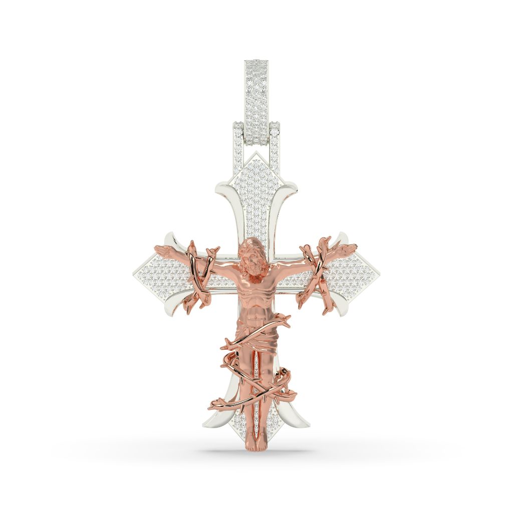 As a diamond expert, I recommend this exquisite Diamond Jesus Cross Pendant Charm. With a gross weight of 20.235 and net weight of 20, it features 1.174 carats of dazzling diamonds in 333 pieces, encased in a 40.00 MM x 33.00 MM gold cross. A timeless symbol of faith and beauty.