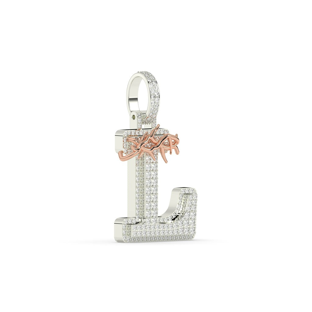 As an industry expert, we present the Divine Crowned L Gold Pendant. Crafted with precise diamond weight of 1.89 carats and 189 pieces, this pendant boasts a gross weight of 12.378 grams, making it elegant yet lightweight. Standing at 40.00 MM height and 24.00 MM width, this pendant exudes grandeur and finesse.