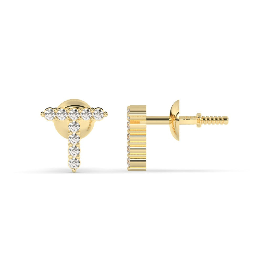 These stunning Personalized T Diamond Stud Earrings feature a gross weight of 1.34 grams and a net weight of 1.3 grams. With a sparkling diamond weight of 0.20 carats and 18 diamond pieces, these earrings are both elegant and eye-catching. The 7.80 MM height and 8.10 MM width make these earrings the perfect size for any occasion. Elevate your style with these exquisite diamond stud earrings.