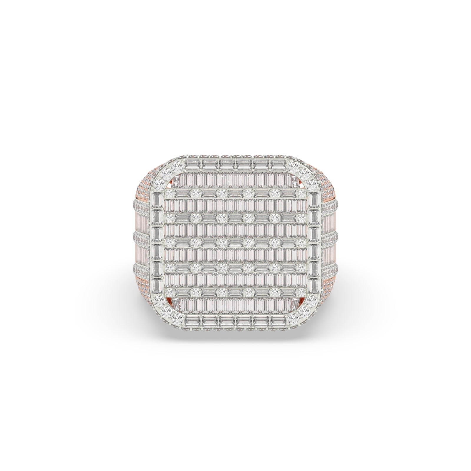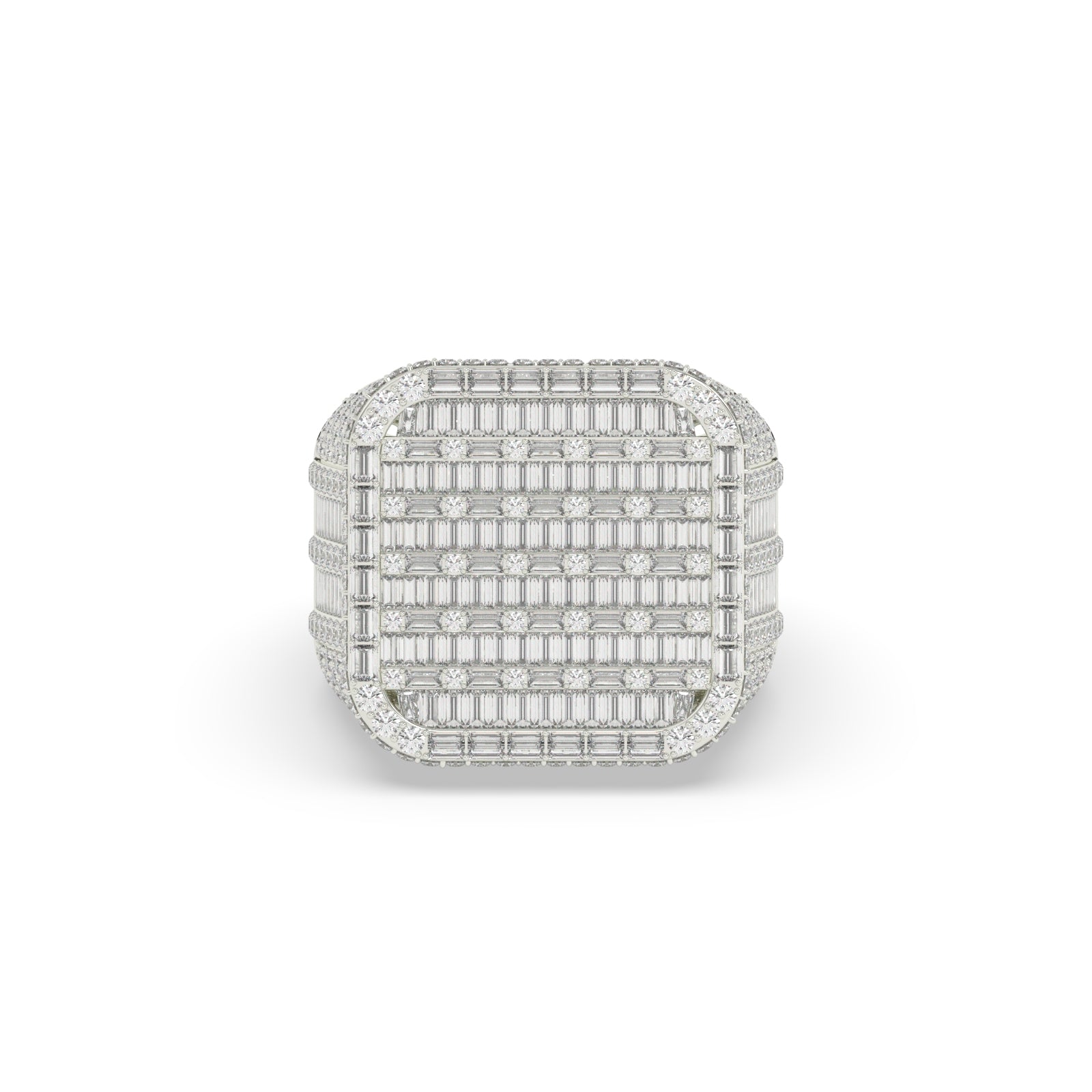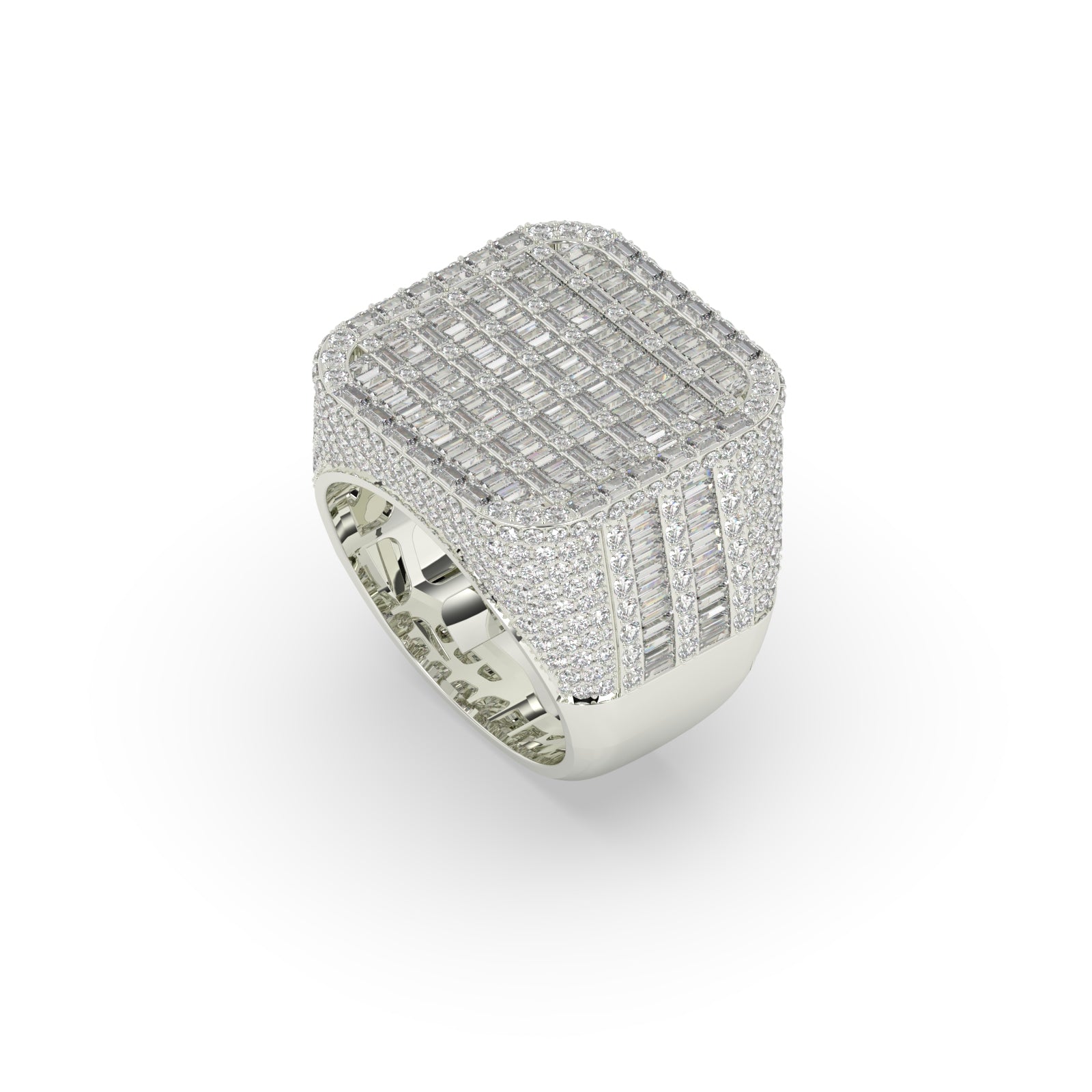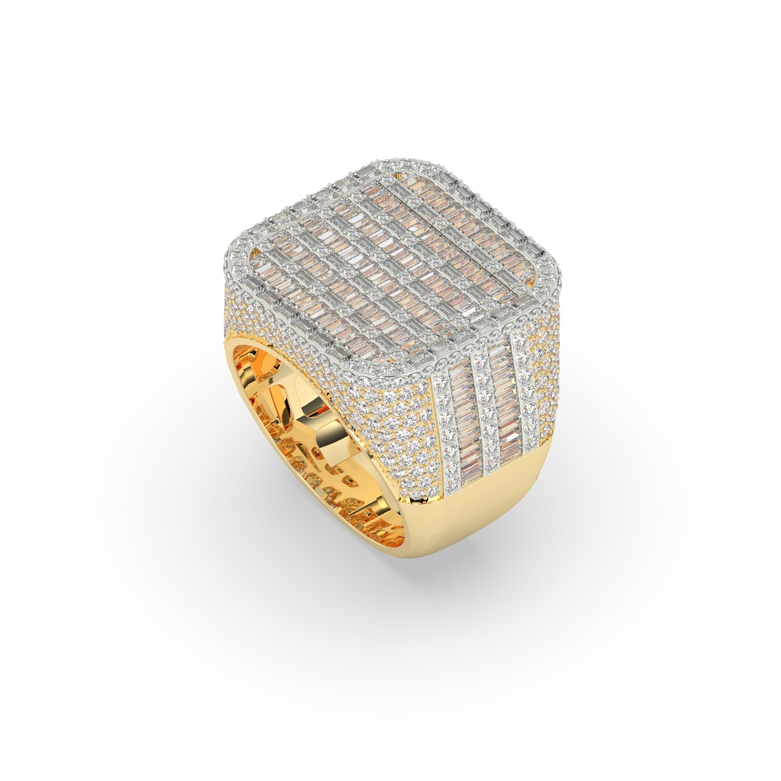 As a stunning addition to any wardrobe, the Empire Grid Baguette Diamond Ring boasts a gross weight of 15.504 grams and a net weight of 14.2 grams. With a diamond weight of 6.52 carats and 530 diamond pieces, this ring is a true showstopper. Measuring 22.00 mm in height and 8.00 mm in width, it is sure to make a statement.
