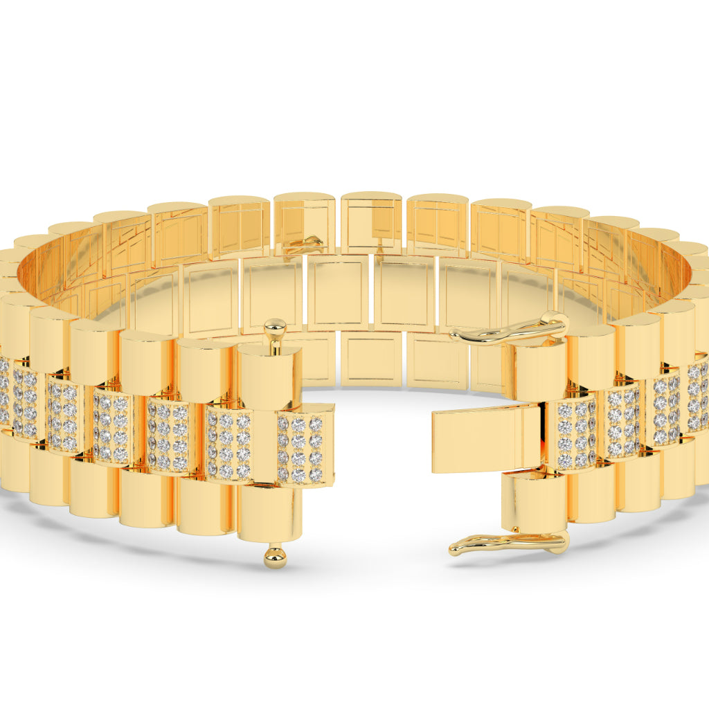 Expertly crafted with 4.32 carats of dazzling diamonds in 432 pieces, the Gold Brick Pavé Shine Bracelet exudes elegance. With a gross weight of 99.864, this 8.85 inch long bracelet is a statement piece that will add a touch of luxury to any outfit.