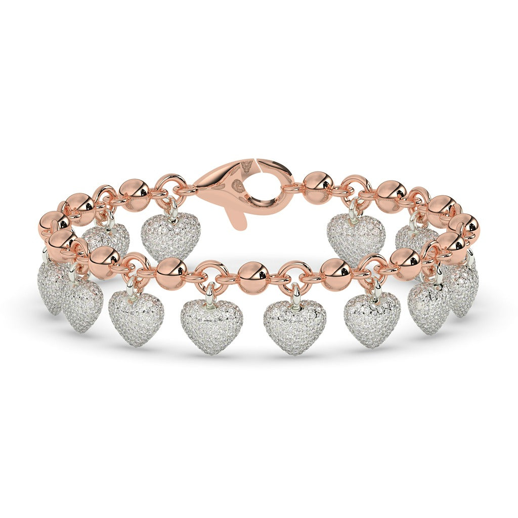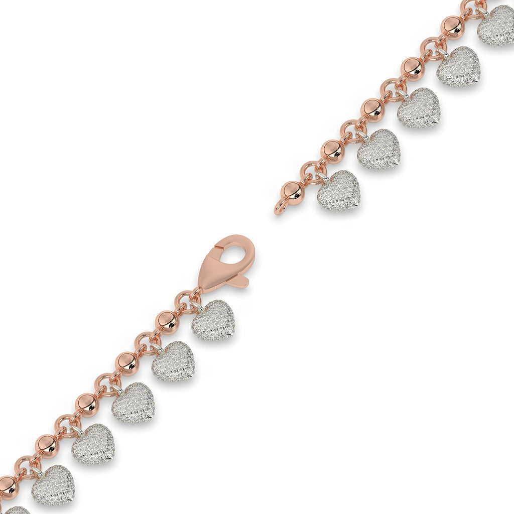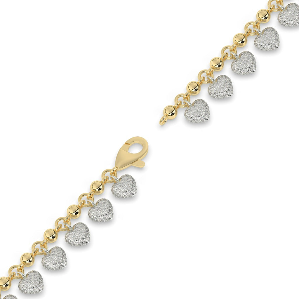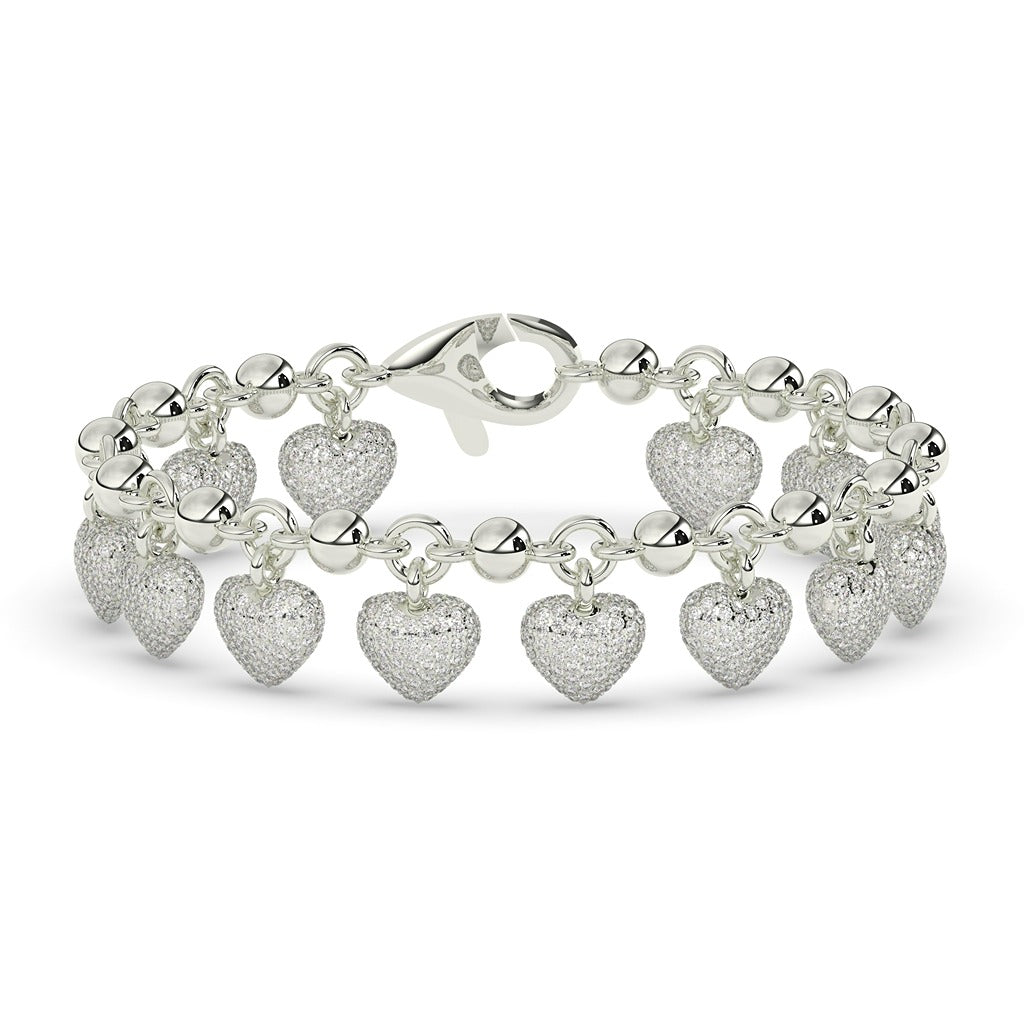 Expertly crafted with a delicate heart charm, this Dainty Heart Charm Bracelet exudes romance and elegance. Made with a gross weight of 21.722, net weight of 20, 8.61 diamond weight, and 1710 diamond pieces, the bracelet boasts a stunning height of 177.80 MM (7.00 INCH) and width of 7.00 MM (0.27 INCH). Perfect for adding a touch of sophistication to any outfit.