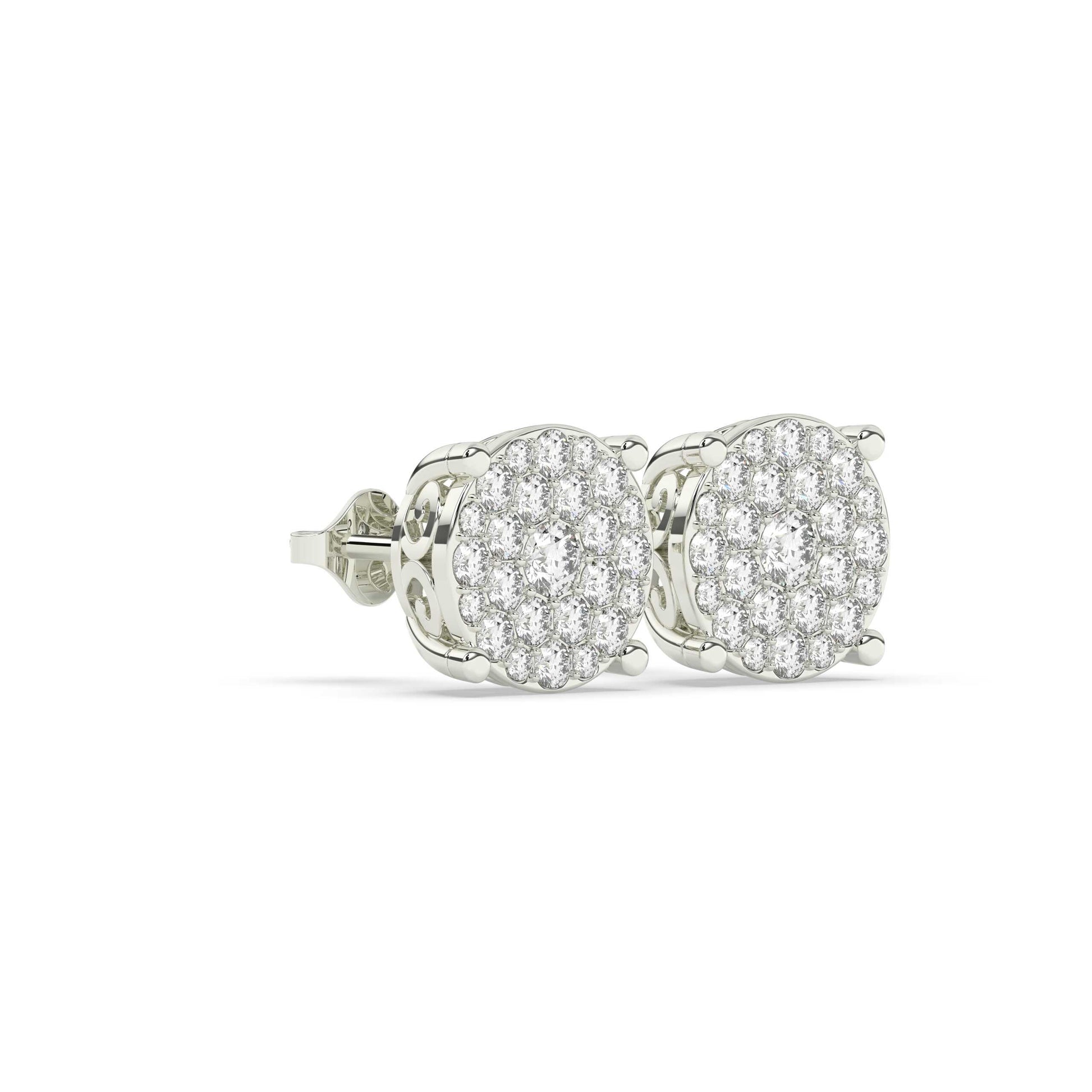 These elegant Gold Pavé Cluster Stud Earrings feature 50 diamonds totaling 1.34 carats, making them the perfect accessory to add a touch of sparkle to any outfit. With a gross weight of 4.868 grams and a height and width of 10.70 MM (0.42 INCH), these earrings are both lightweight and eye-catching. Elevate your style with these beautiful, high-quality earrings.