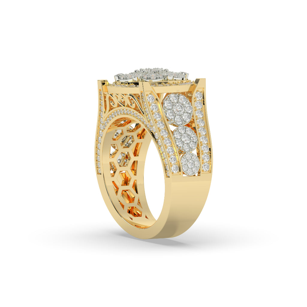 Our Golden Bloom Cluster Diamond Ring features a gross weight of 12.501 grams and a net weight of 12 grams. With a stunning diamond weight of 2.504 carats and 271 individual diamonds, this ring sparkles from every angle. The ring's height of 16.3 MM (0.64 INCH) and width of 5.20 MM (0.20 INCH) create a beautifully bold statement piece.