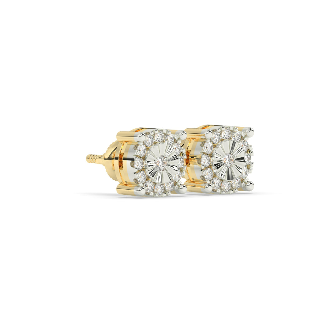Expertly crafted, these Golden Halo Radiant Stud Earrings feature a total of 26 sparkling diamonds weighing 0.57 carats. With a gross weight of 3.514 and a sleek 9.00 MM height and width, these earrings will add a touch of radiance and elegance to any outfit. Perfect for any occasion.