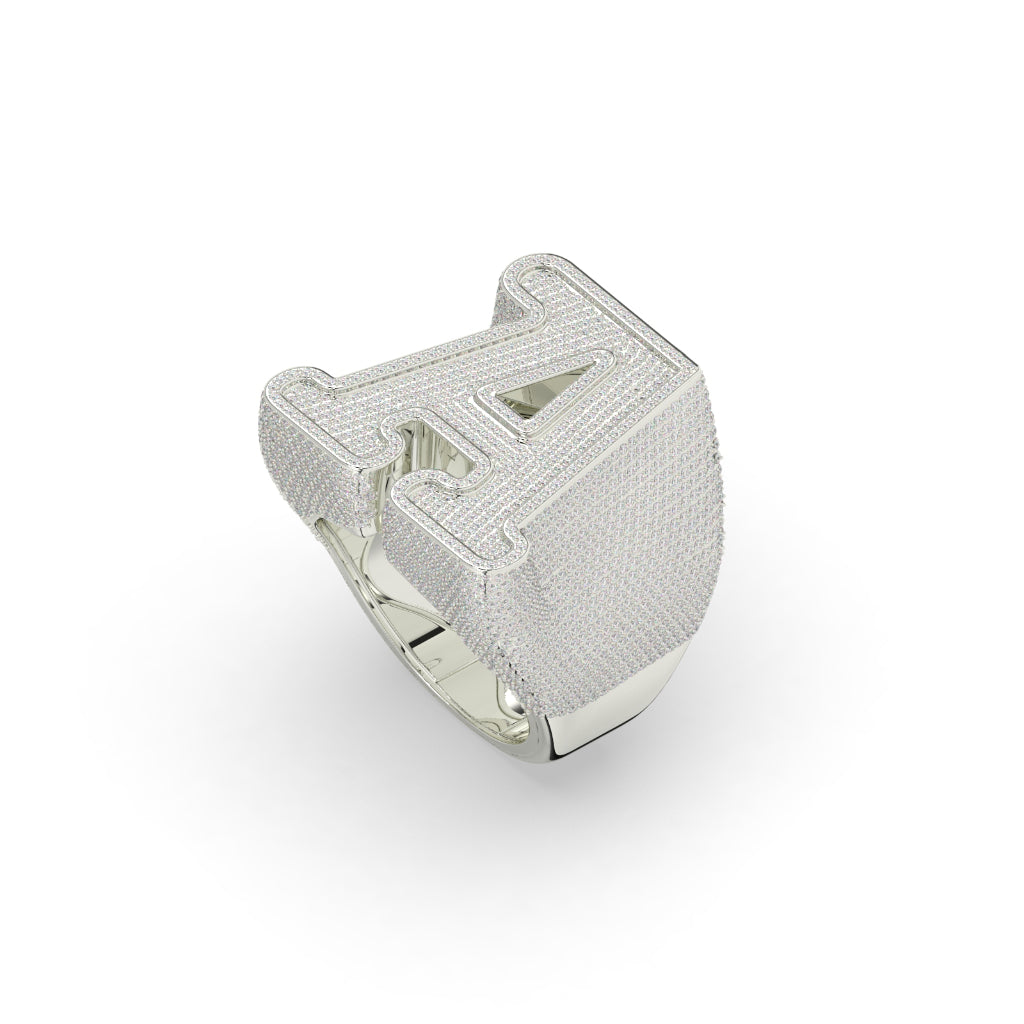 Expertly crafted with a total diamond weight of 5.598 carats, this 22.12 gram Golden Iced Out A Ring is designed to impress. Made with 1914 diamond pieces, it boasts a height of 25.00 MM and a width of 7.00 MM. Elevate any outfit with this exquisite piece.