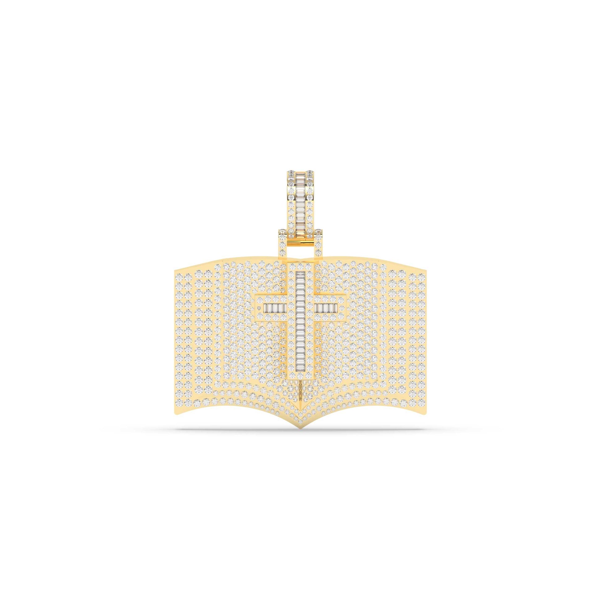This elegant Iced Bible Cross Gold Pendant is a perfect way to showcase your faith with style and grace. Crafted with fine gold, this pendant features a beautifully detailed cross adorned with sparkling iced details. With its intricate design and timeless beauty, this pendant is a perfect addition to any collection.