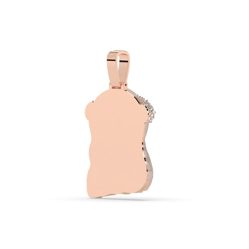This Iced Jesus Head Crown Pendant is a stunning piece of jewelry that boasts a gross weight of 32.666 grams and a net weight of 31 grams. Adorned with 8.33 carats of diamonds, totaling 1231 individual pieces, this pendant stands at 44.90 MM (1.75 INCH) in height and 31.50 MM (1.25 INCH) in width. Experience the beauty and luxury of this exquisite pendant for yourself.