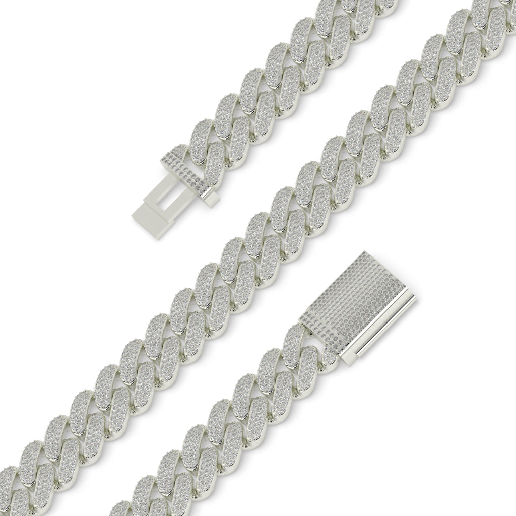 The Iced Supreme Cuban Link Chain is a luxurious addition to any jewelry collection. With a gross weight of 122.384 grams and a net weight of 120 grams, this chain is both substantial and elegant. Featuring 11.922 carats of dazzling diamonds in 4094 pieces, this chain is sure to make a statement. Measuring at 508 MM (20.00 INCH) in height and 10.00 MM (0.39 INCH) in width, this chain is the perfect combination of size and sophistication. Elevate your style with the Iced Supreme Cuban Link Chain.