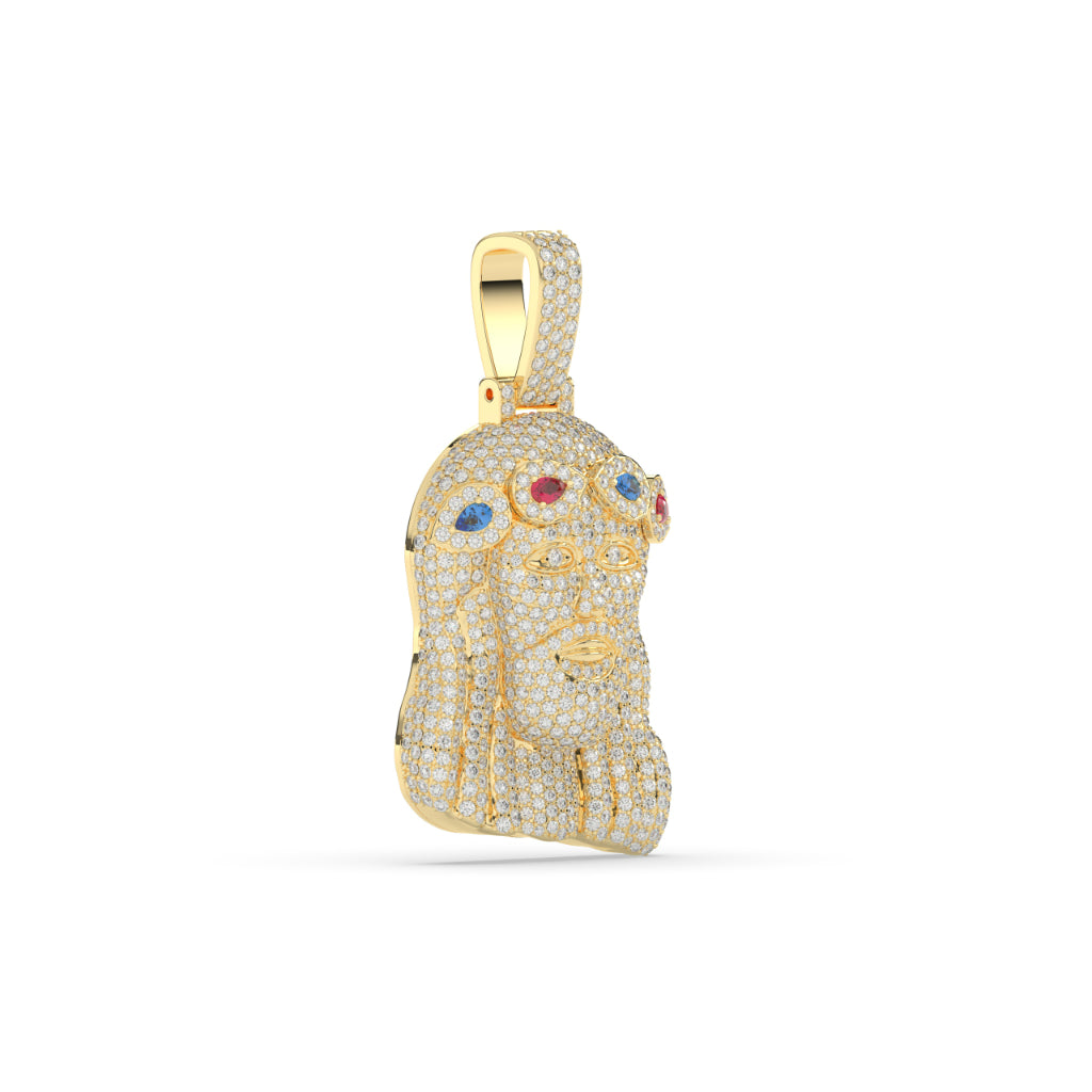 Expertly crafted with 630 diamond pieces totaling 3.62 carats, this Jesus Face Multicolor Crown Pendant boasts a net weight of 18 grams. The stunning 0.22 carat stone accents add a touch of elegance to the 45.50 MM x 23.00 MM design. A must-have for any jewelry collection.
