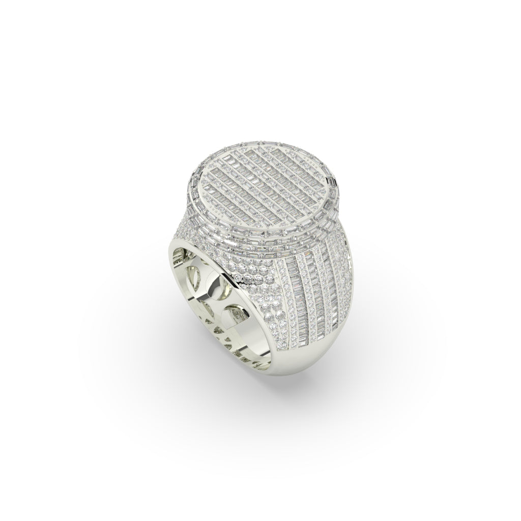 This exquisite Luxury Round Cut Bling Ring boasts a gross weight of 17.182 grams and a net weight of 16.1 grams. It features a stunning diamond weight of 5.41 carats, with 563 individual diamonds. Its impressive height of 20.25 mm and width of 7.50 mm make it a statement piece of superior craftsmanship.