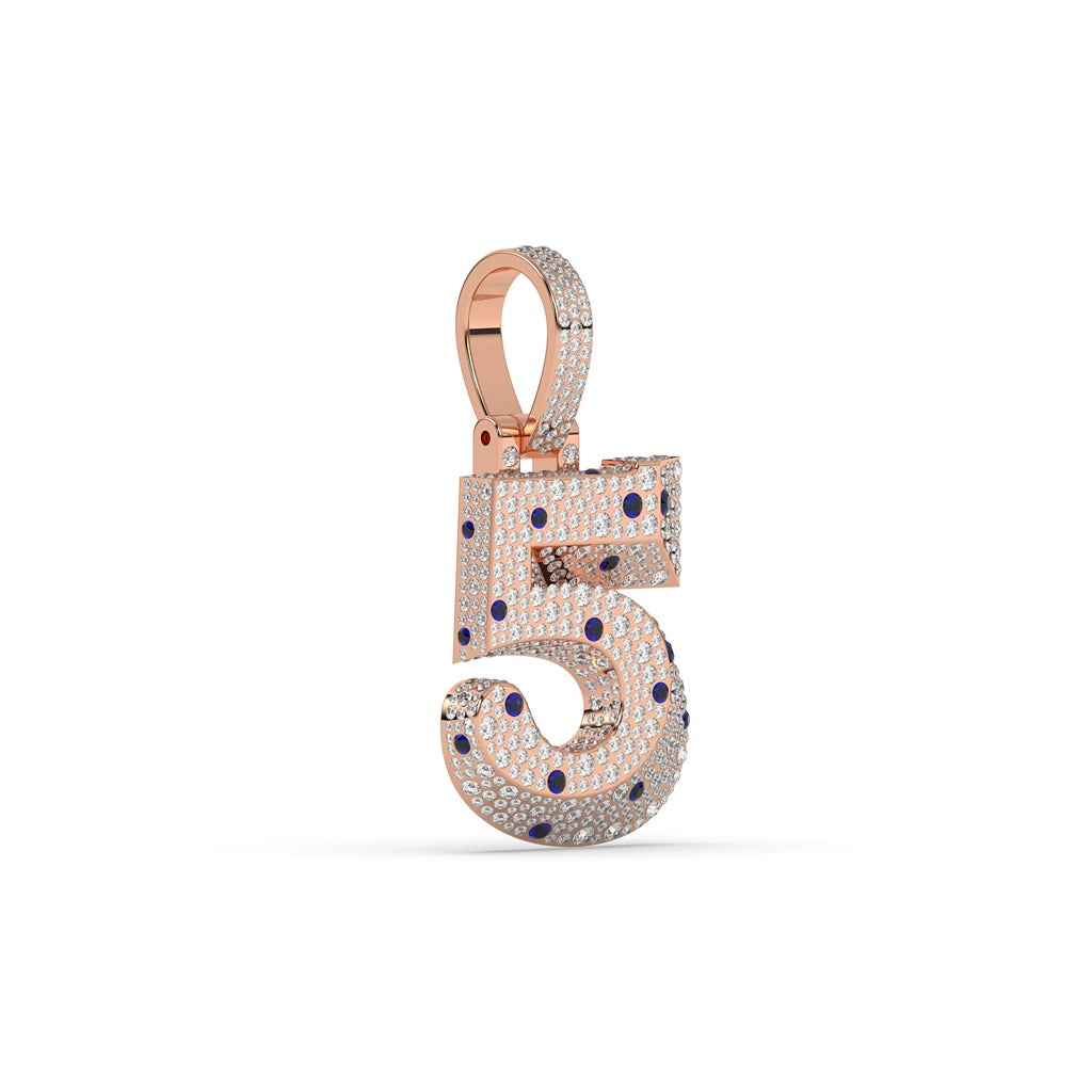 As a diamond expert, I can confidently say our Number Five Diamond Iced Charm boasts an impressive 2.88 carat weight spread across 547 individual pieces. With a net weight of 11 grams and classic 1.00 inch by 0.80 inch dimensions, this charm is the perfect addition to any jewelry collection.