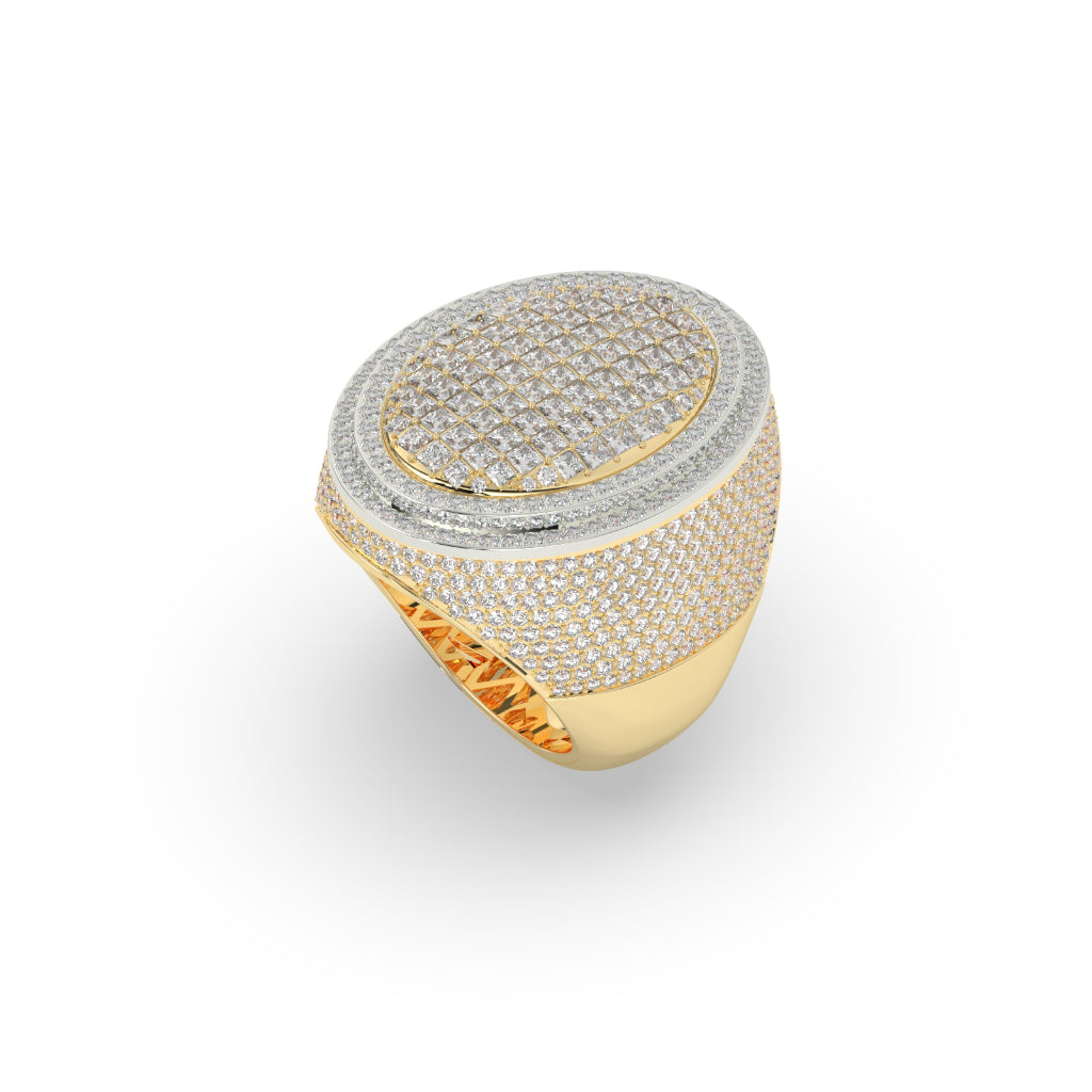 Expertly crafted with 648 sparkling diamonds totaling 6.46 carats, this Oval Grid Full Diamond Ring is an elegant and dazzling piece. Its 29.70 MM height and 6.60 MM width make it a statement-making addition to any outfit. At 20.3 grams, it is lightweight yet substantial.