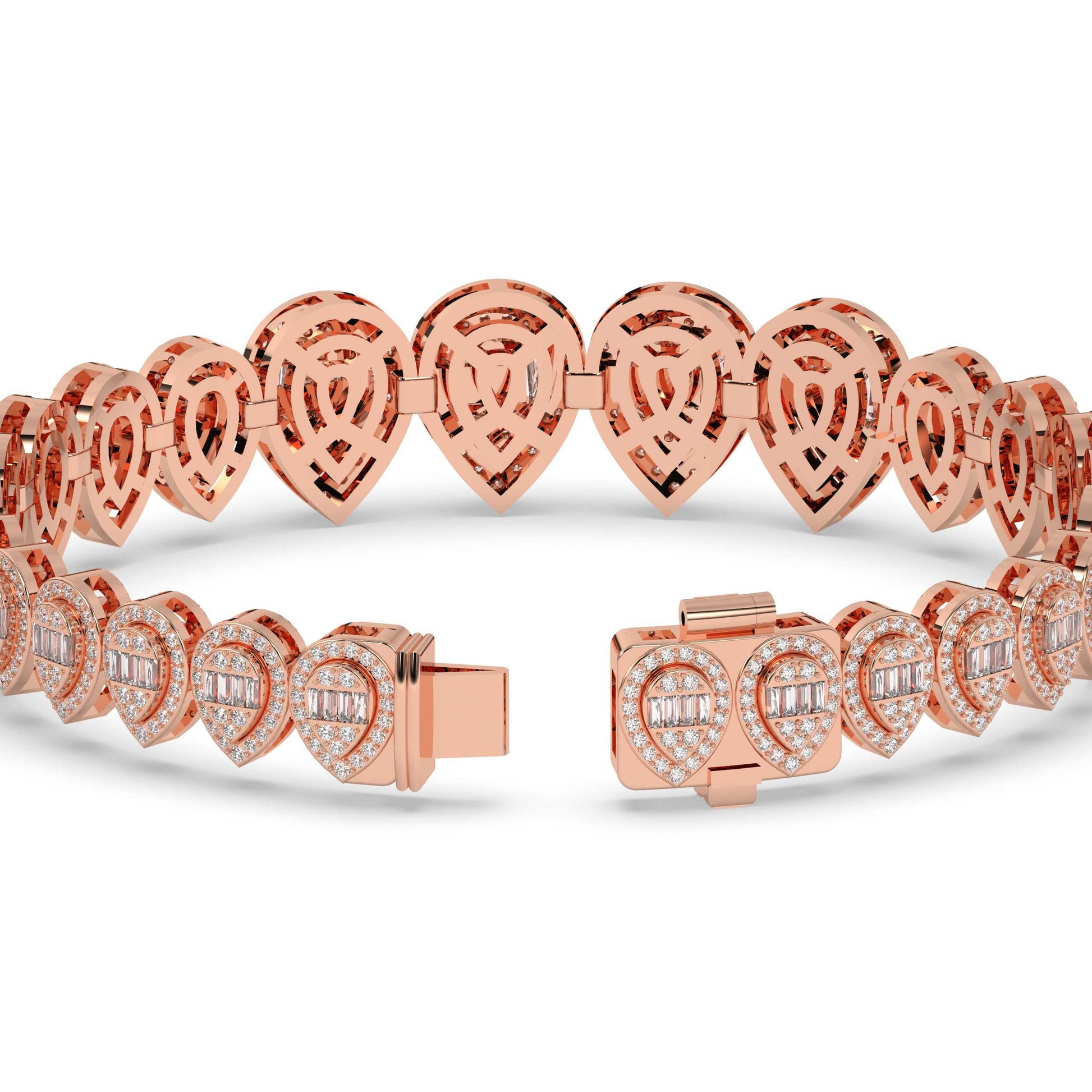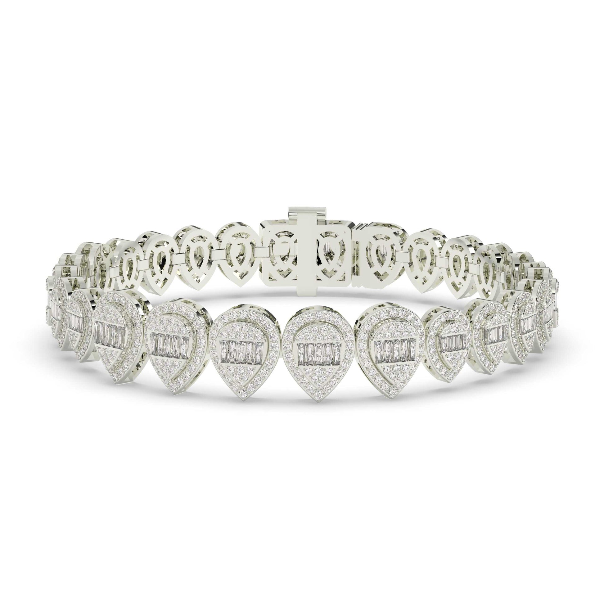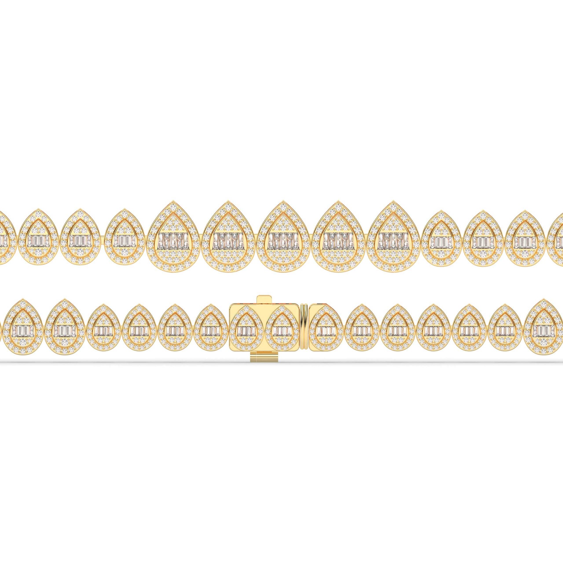This Pear Drop Ice Gold Bracelet boasts a gross weight of 24.178 grams and a net weight of 23 grams, making it a lightweight and comfortable accessory. The bracelet is adorned with 826 diamonds, totaling 5.89 carats, for a stunning and luxurious look. With a height of 190.50 MM and a width of 12.00 MM, this piece is both elegant and versatile.
