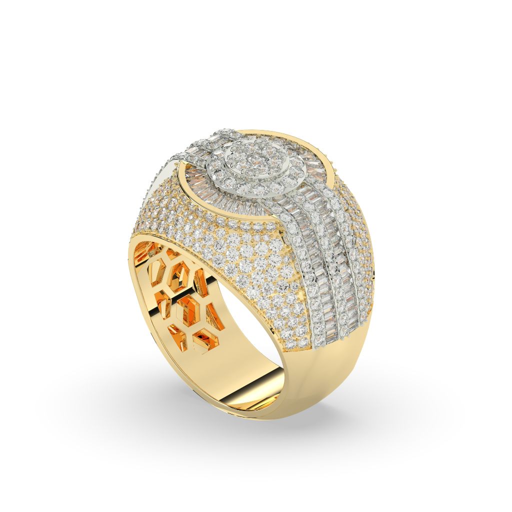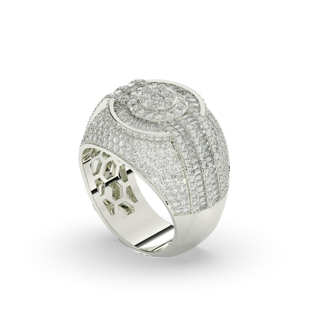 Expertly crafted, the Radiant Glory Baguette Cluster Ring boasts a dazzling display of 392 diamonds weighing 3.75 carats. With a gross weight of 14.25 grams and a sleek design measuring 20.00mm x 8.80mm, this ring exudes elegance and luxury. Elevate any look with this stunning piece.
