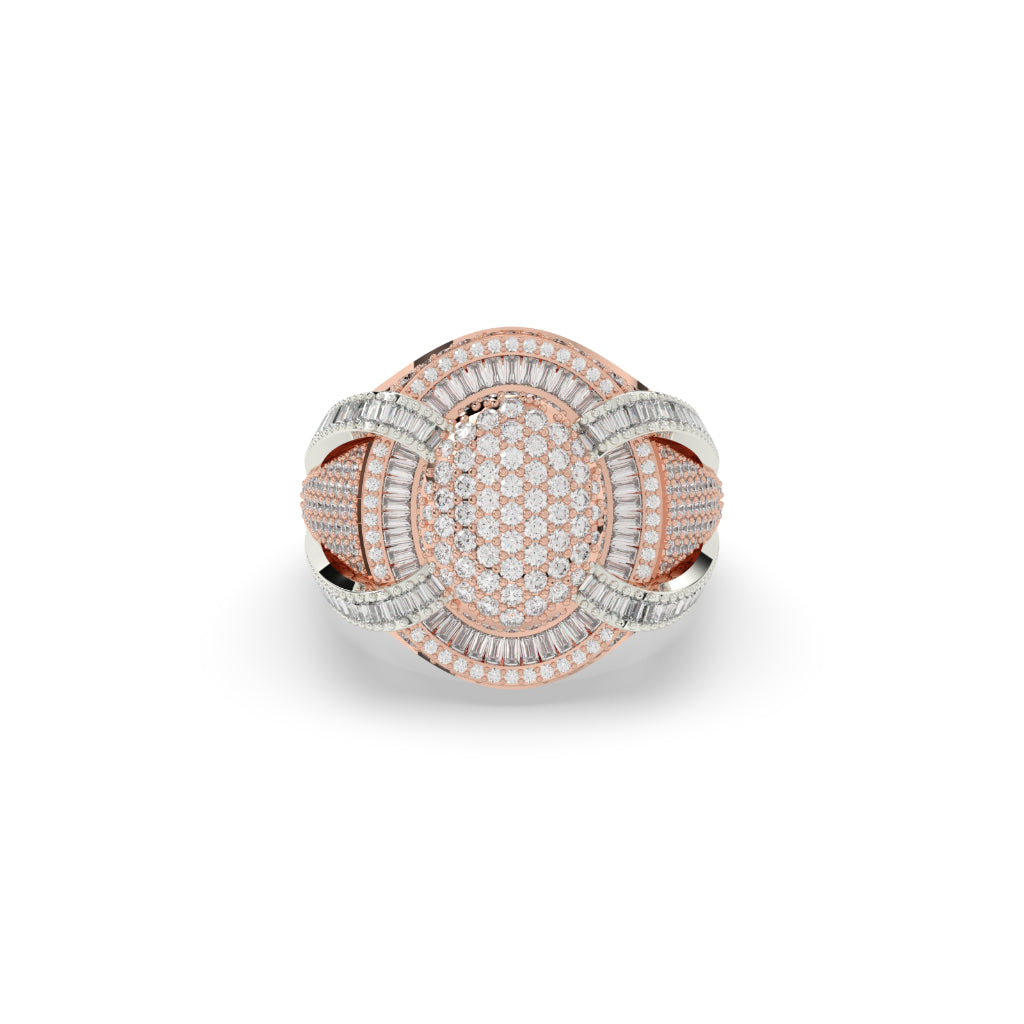 Expertly crafted and stunningly beautiful, the Regal Oval Diamond Statement Ring features a net weight of 16 grams and a diamond weight of 3.62 carats. With 397 diamond pieces elegantly set in a 21.50 MM height and 4.50 MM width, this ring is a dazzling addition to any jewelry collection.