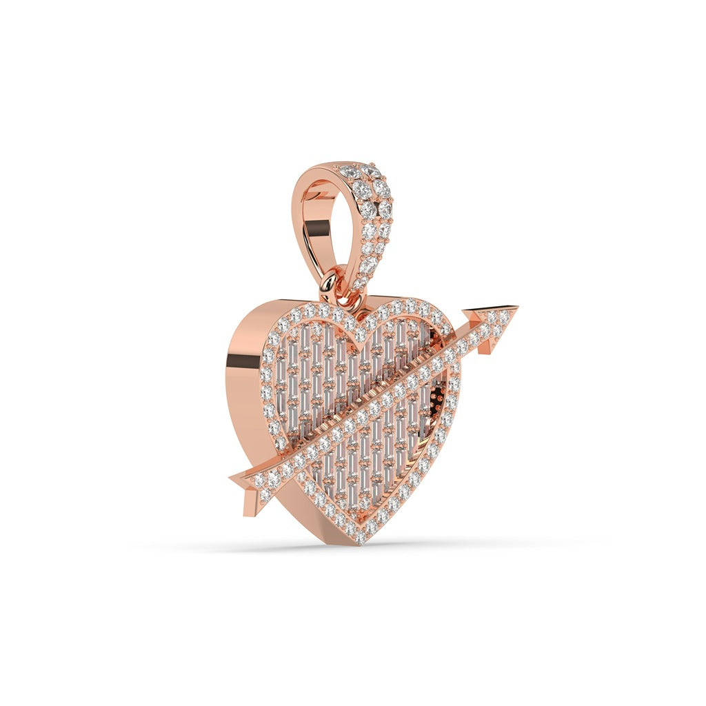 Experience a touch of romance with our Romantic Heart Arrow Diamond Necklace. Adorned with 147 sparkling diamonds, totaling 1.25 carats, this necklace is sure to make a statement. With a gross weight of 7.25 grams and a stylish 25.40mm diameter, it's the perfect accessory for any occasion.