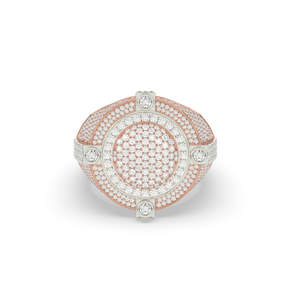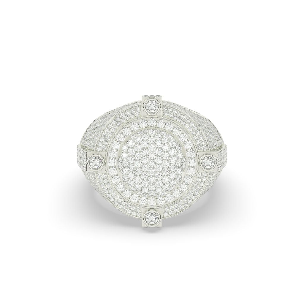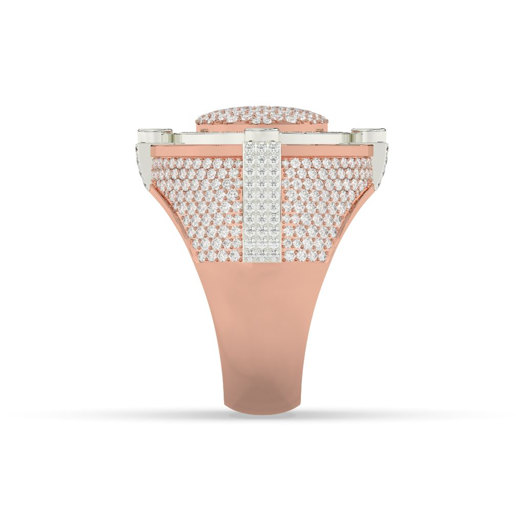 Become the center of attention with the Royal Frosted Halo Gold Ring. This sophisticated piece boasts a gross weight of 18.21 grams and a net weight of 17.5 grams. With a stunning diamond weight of 3.55 carats and 555 diamond pieces, this ring will add extra sparkle to any outfit. Its 24.20 mm height and 7.30 mm width provide the perfect balance of elegance and boldness.