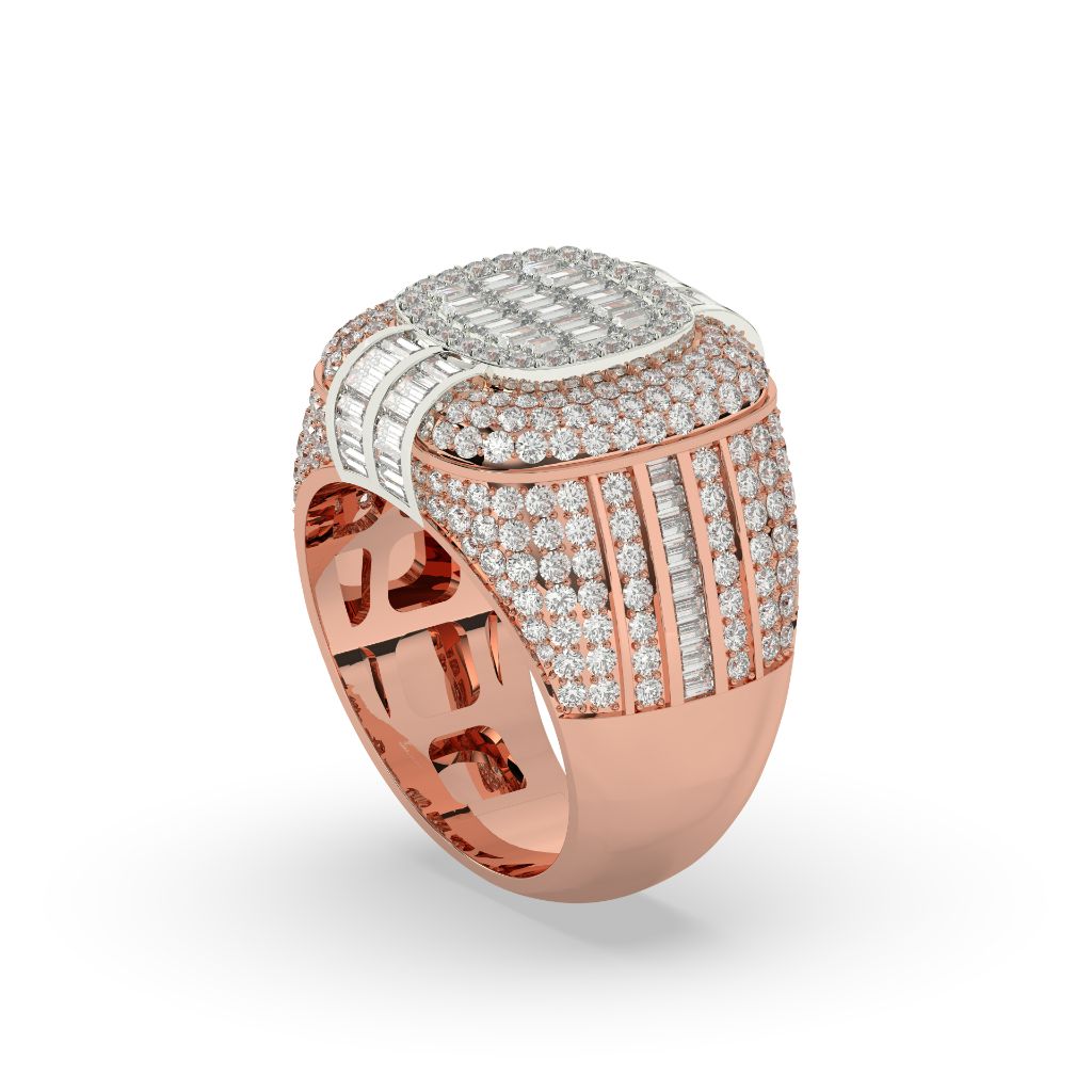Discover the true meaning of elegance with our Royal Radiance Diamond Cluster Ring. Expertly crafted with a gross weight of 13.53 and a net weight of 12.7, this ring features 312 sparkling diamonds, totaling 4.15 carats. With a height of 20.22 MM and width of 7.00 MM, this eye-catching piece will elevate any look.