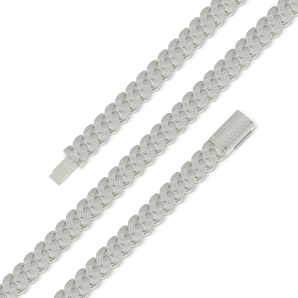Expertly crafted with a gleaming diamond weight of 51.22 and 3109 pieces, the Solid Shine Iced Cuban Chain boasts a gross weight of 435.244 and a shining net weight of 425. With a height of 558.8 MM and a width of 18.00 MM, this chain is the epitome of quality craftsmanship and luxury. Upgrade your style with this stunning piece.