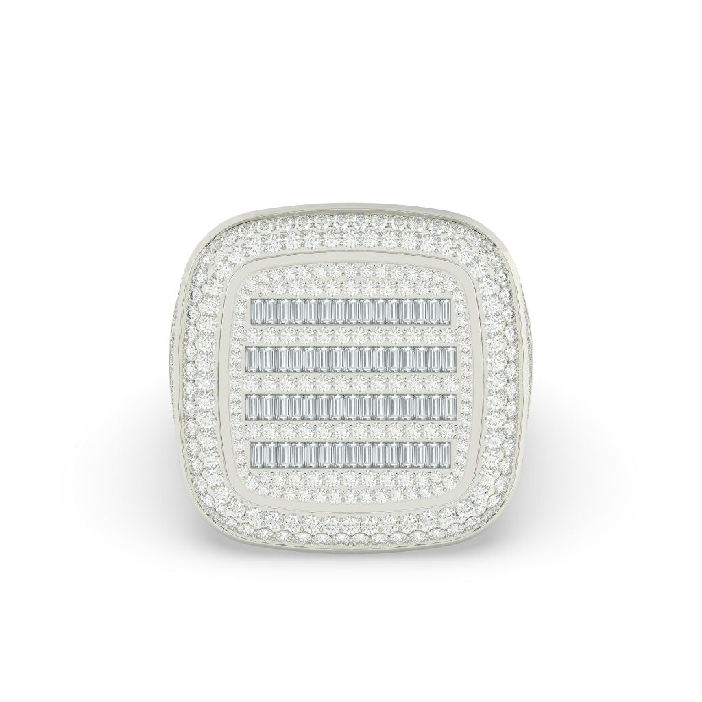 This Square Frame Baguette Diamond Ring features 5.01 carats of diamonds in 434 pieces, with a gross weight of 18.802 grams and a net weight of 17.8 grams. Its height is 26.50 MM and width is 8.57 MM, making it a stunning and substantial piece of jewelry for any occasion.
