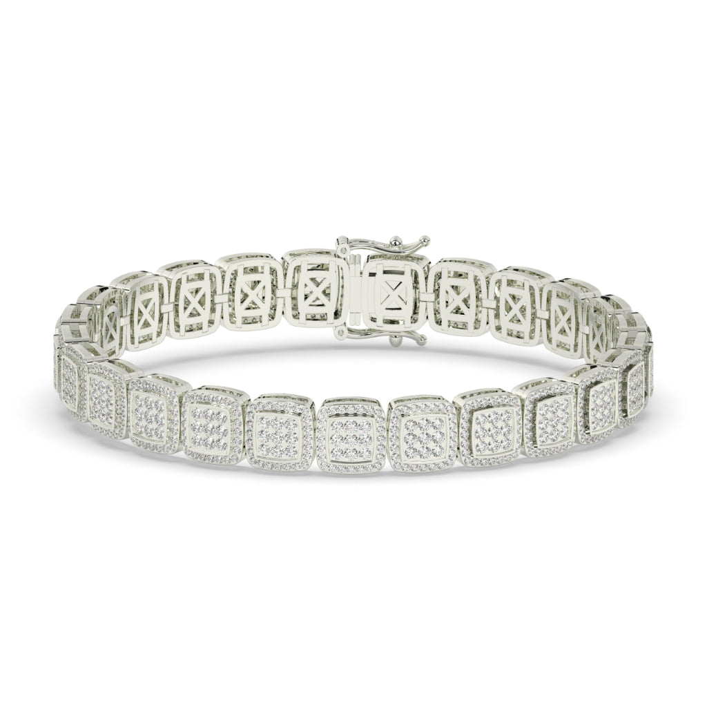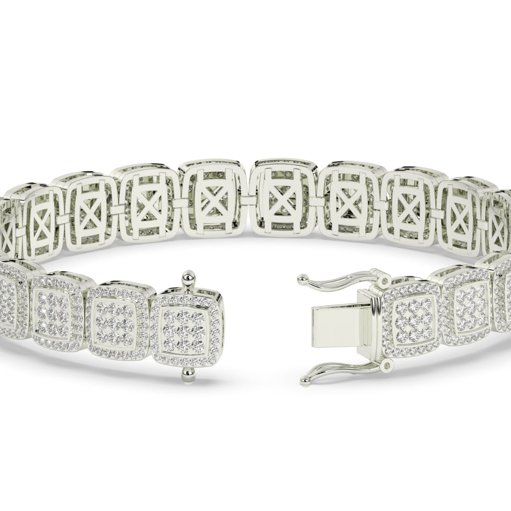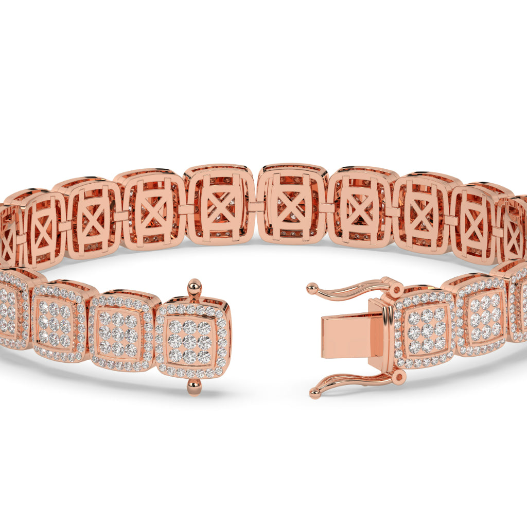 Expertly crafted with a gross weight of 24.96 and a net weight of 24, the Square Link Diamond Gold Bracelet boasts 4.8 carats of sparkling diamonds in 825 individual pieces. With the height of 203.2 MM (8.00 INCH) and width of 8.00 MM (0.31 INCH), this bracelet is the perfect blend of elegance and luxury.