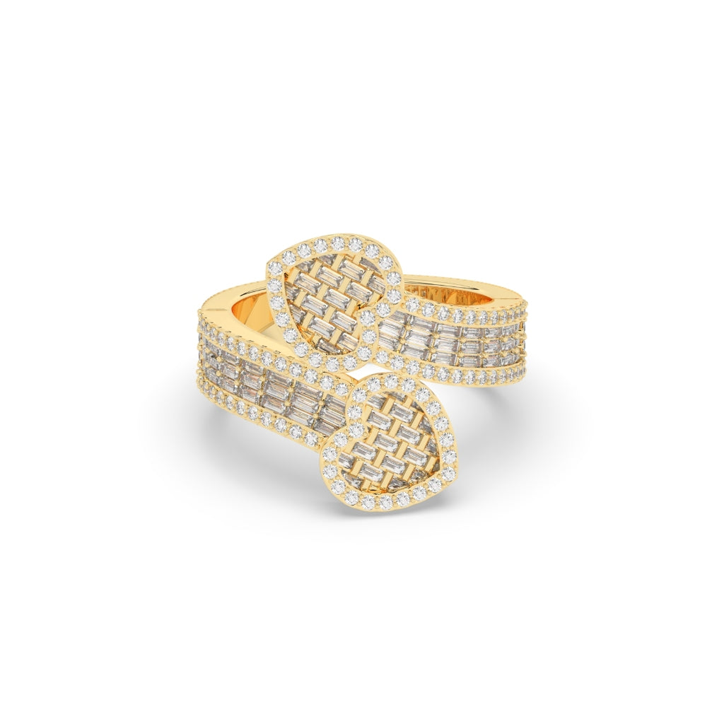 Expertly crafted and designed, the Twin Heart Baguette Sparkle Ring boasts a gross weight of 10.224 grams, with 1.122 carats of dazzling diamonds in 162 pieces. At a height of 18.50 mm and width of 5.00 mm, this ring is the epitome of elegance and luxury.