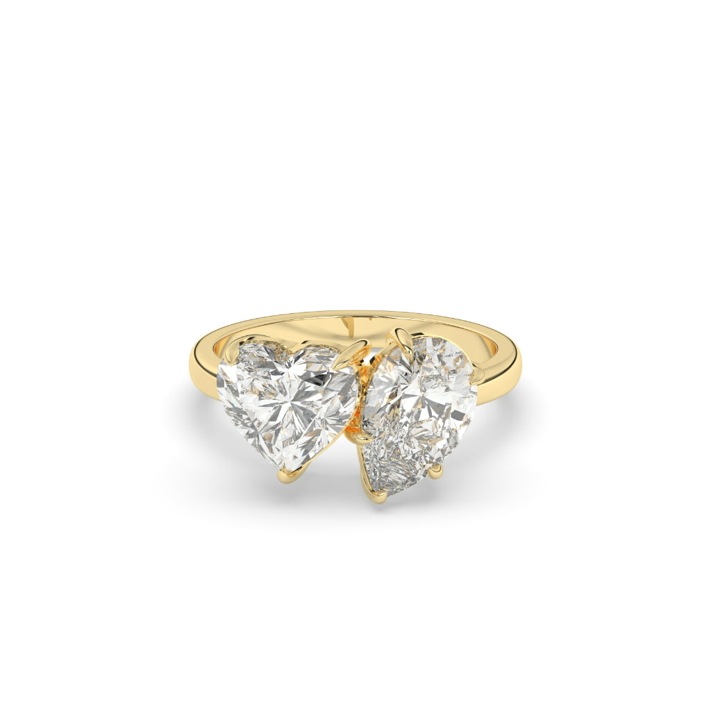 Introducing our Twin Heart Diamond Promise Ring - the perfect symbol of love and commitment. With a gross weight of 3.308 grams and a net weight of 2.7 grams, this ring features two stunning diamonds with a combined weight of 3.04 carats. The ring stands tall at 9.00 MM and has a delicate width of 1.80 MM. Express your love with this beautiful and timeless piece.